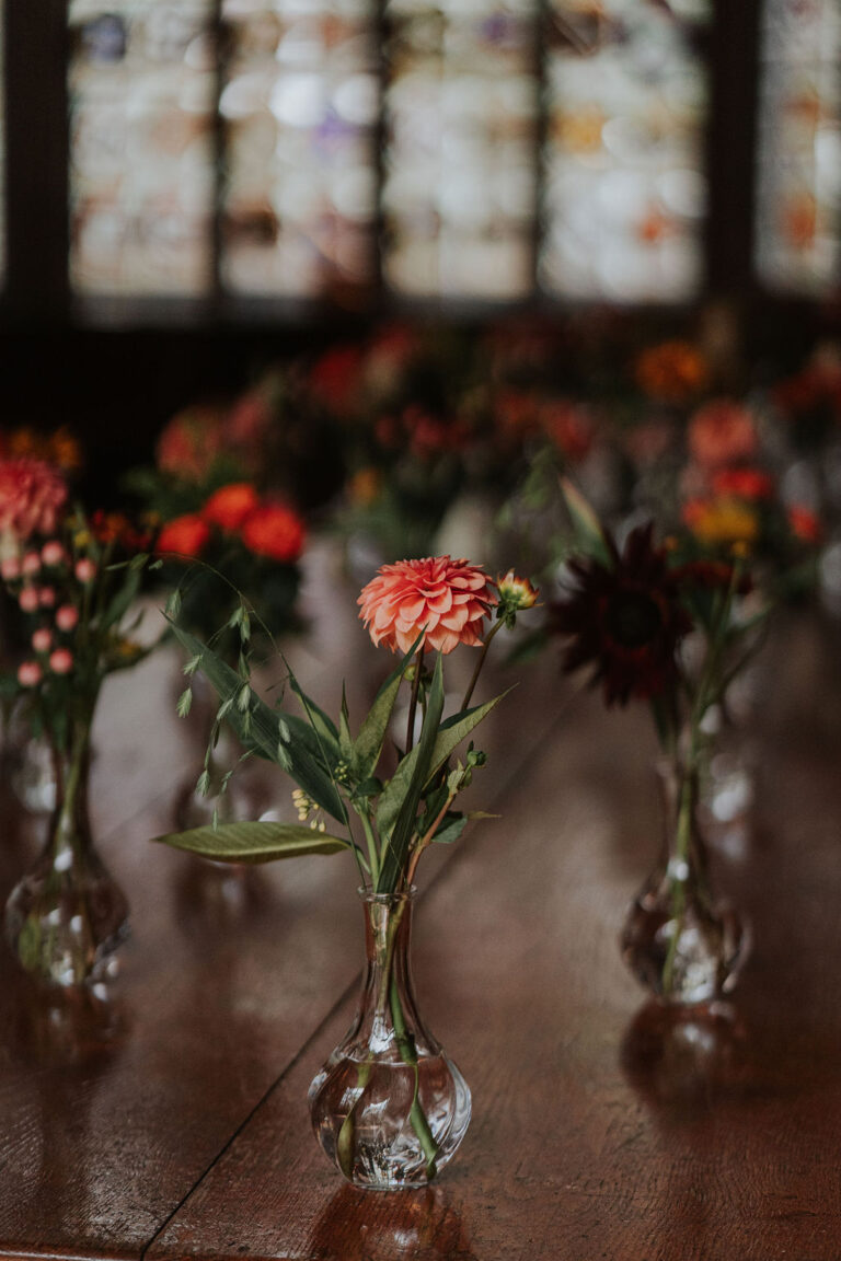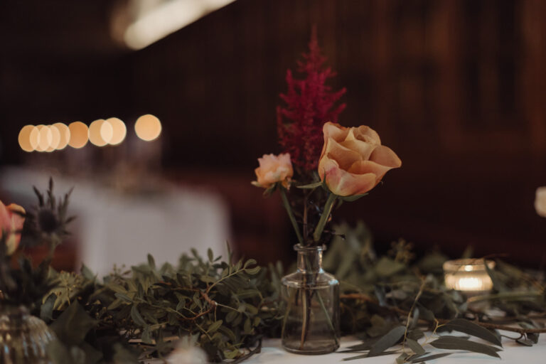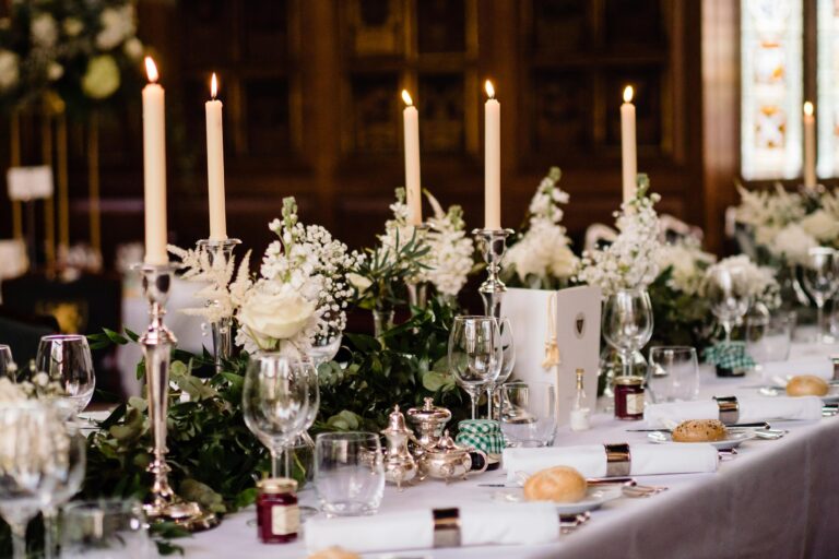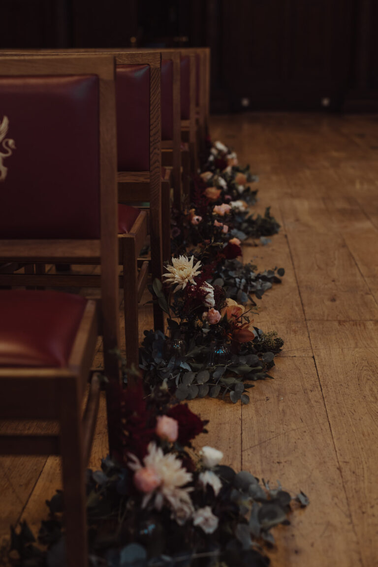 From soft, romantic palettes to bold, sculptural designs in tall statement vases, florals create a visual language that flows naturally from ceremony through to reception. Even within indoor wedding spaces, these choices can introduce movement and softness whilst also bringing a subtle garden-inspired atmosphere inside without losing a sense of elegance.