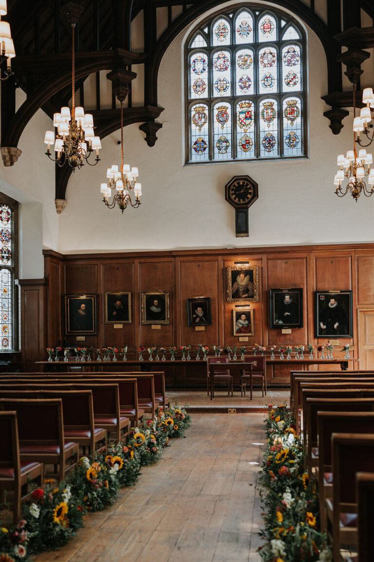 Gray’s Inn offers a rare combination of historic halls and five acres of private gardens, making it a truly versatile London wedding venue for both indoor and outdoor celebrations. This unique setting allows florals to enhance every space, adding softness to grand interiors and complementing the natural beauty of the gardens.