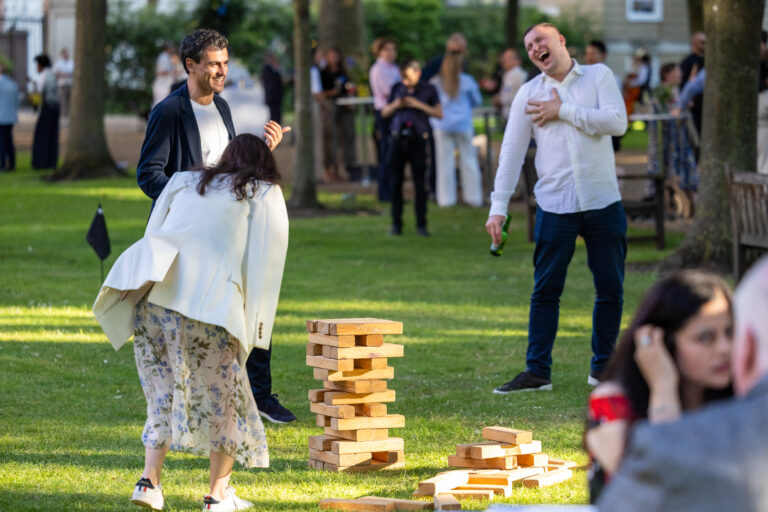 Encourage friendly competition and laughter with games like giant Jenga, croquet or Connect Four. These relaxed, playful elements allow guests to enjoy the outdoor space, mingle naturally and add a social dimension to the celebration.