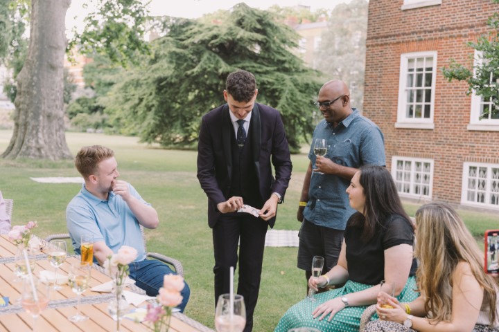 Bring energy and surprise with roaming performers, such as a magician. Moving through the garden and terrace, these interactive entertainers surprise and delight guests, perfect for corporate receptions and summer celebrations.