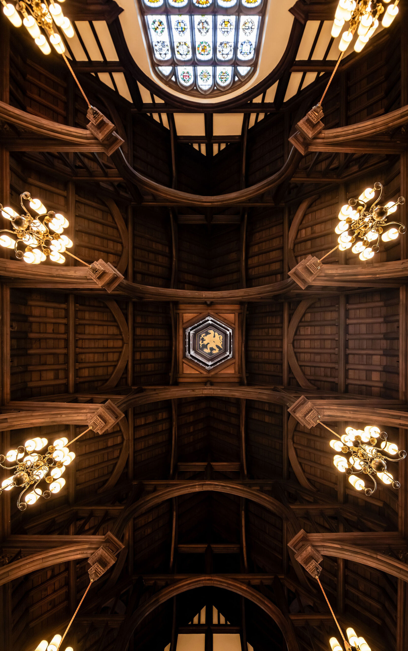 Largely unchanged since the time of Queen Elizabeth I, its original features include heraldic shields, historic paintings, stained-glass windows dating back to 1462, and the Great Screen from the early 1570s.